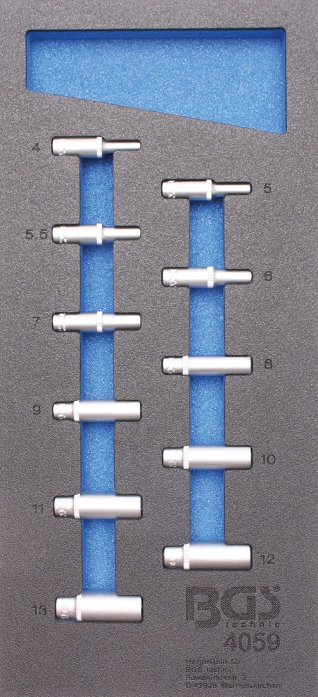 BGS technic 1/3 Szerszámtálca szerszámkocsihoz: 11 részes 1/4" 6-szögű hosszított dugókulcs készlettel, 4-13 mm (BGS 4059)