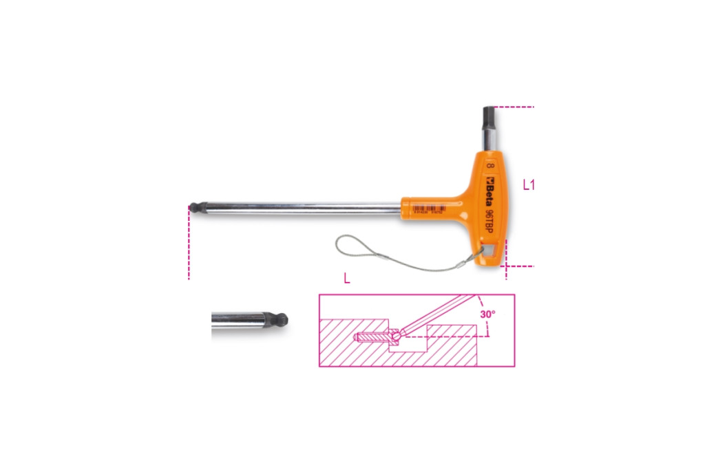 Beta 96TBP-HS 2,5 Hajlított gömbfejű imbuszkulcsok nagy nyomatékú T-markolattal, krómozott, H-SAFE