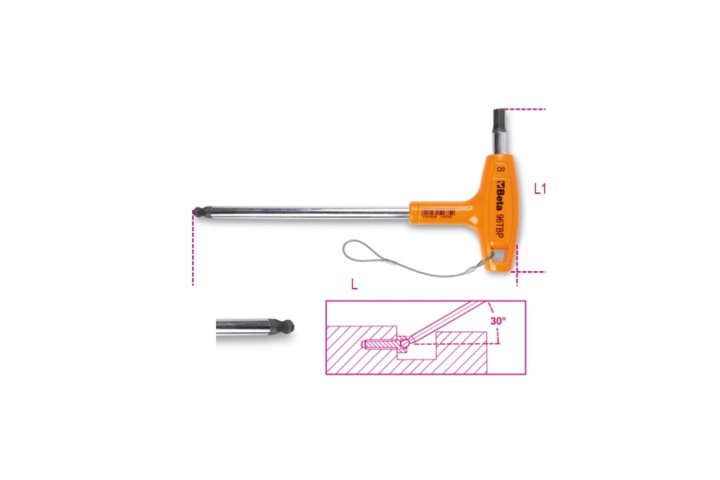 Beta 96TBP-HS 8 Hajlított gömbfejű imbuszkulcsok nagy nyomatékú T-markolattal, krómozott, H-SAFE