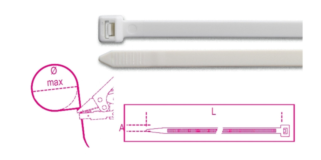 Beta BMB1025V0   Önkioltó műanyag kábelkötegelő szalag, fehér