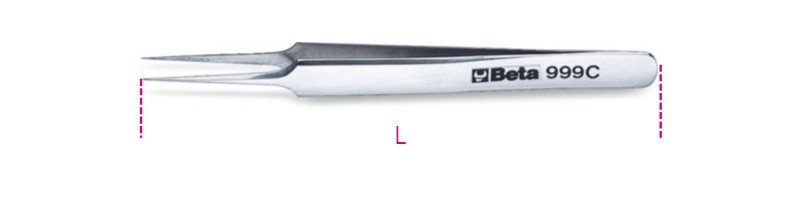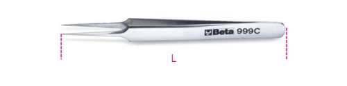 Beta 999C Egyenes csipesz, nem mágneses, saválló, tűhegyes, rozsdamentes acélból, polírozott
