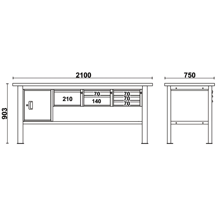 Beta C58BC-W2,1 6CA/O Fa munkalapos munkapad, 2,1 m széles, 6 fiókkal és ajtós modullal