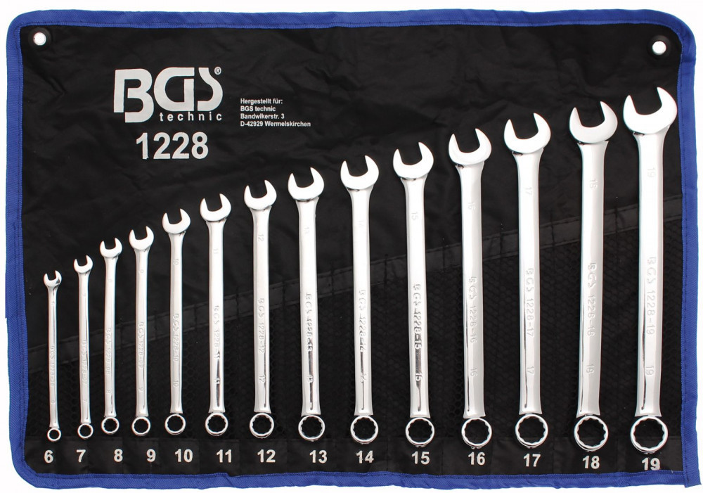 BGS technic 14 részes csillag-villás kulcs készlet, extra hosszú, 6-19mm (BGS 1228)