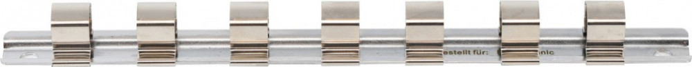 Krómozott kivitelű fém sín 7 db 1/2"-os dugófej tárolásához.