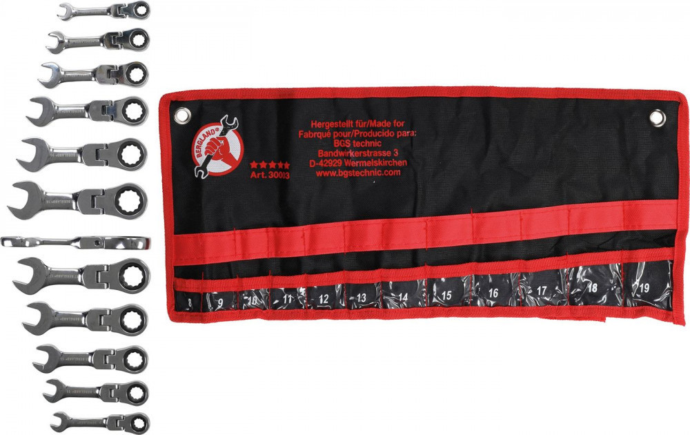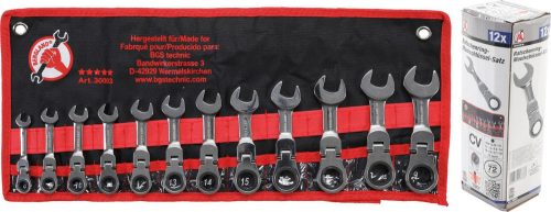 Kraftmann Csillag-villás kulcs készlet racsnis 12 részes, csuklós, extra rövid (BGS 30003)