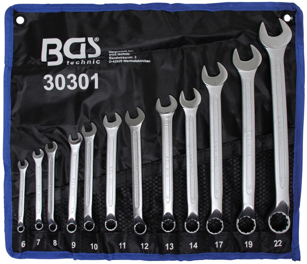BGS technic 12 részes hajlított csillag-villáskulcs készlet, 6-22 mm (BGS 30301)