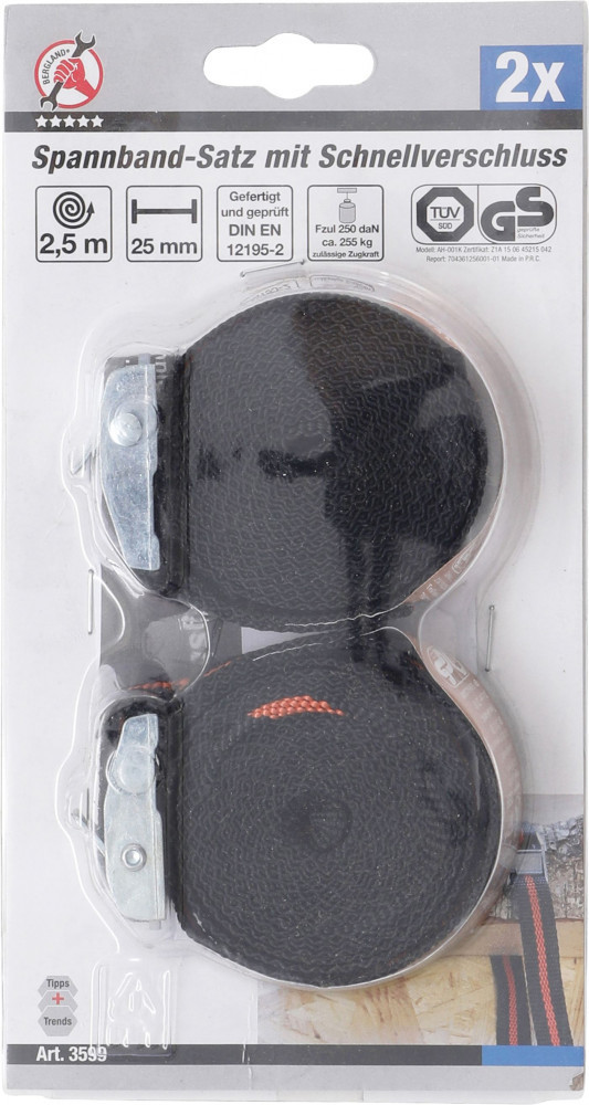 Kraftmann 2 részes poggyász pánt készlet, 2.5 m x 25 mm (BGS 3599)