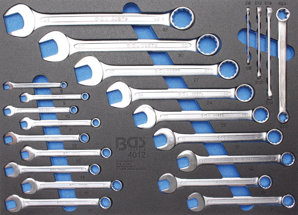 BGS technic 3/3 Szerszámtálca szerszámkocsihoz: 22 részes csillag-villás csavarkulcs és E-Torx csillagkulcs készlettel (BGS 4012)