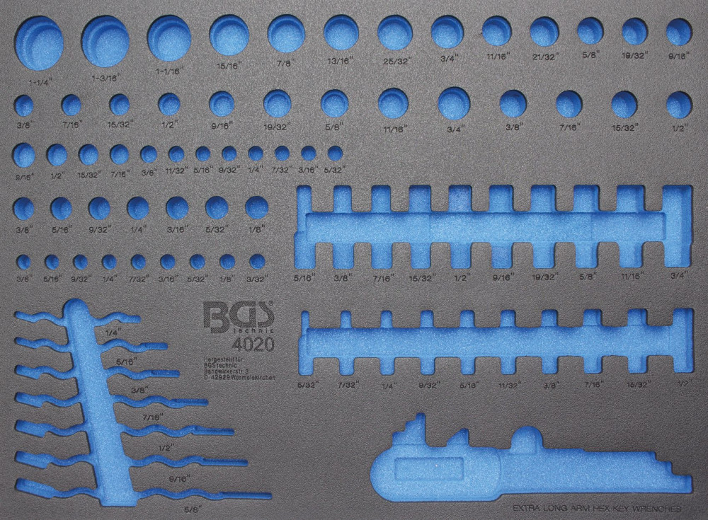 BGS technic 3/3 Szerszámtálca szerszámkocsihoz, üresen: dugófejekhez és csillag-villás kulcsokhoz (nem tartozék) (BGS 4020-5)