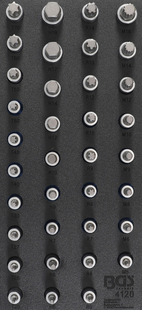 BGS technic 1/3 Szerszámtálca szerszámkocsihoz: 1/2" Bit dugókulcs készlet | különböző profilok | 36 darabos (BGS 4120)