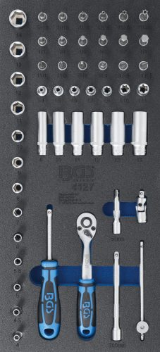 BGS technic 1/3 Szerszámtálca szerszámkocsihoz: 50 részes dugókulcs és hajtószár készlettel,1/4" (BGS 4127)