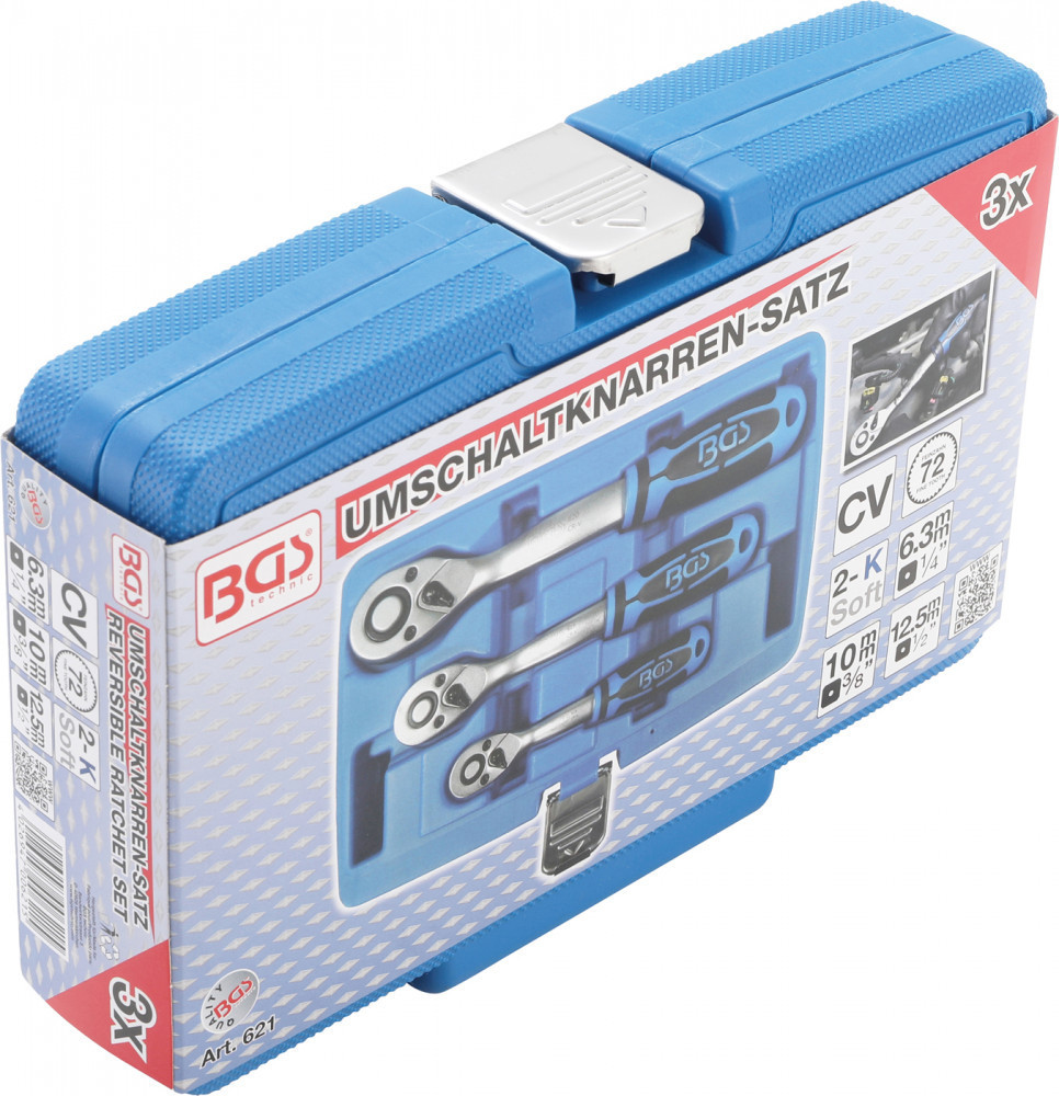BGS technic Racsnis hajtószár készlet | finom fogazású | 6,3 mm (1/4") / 10 mm / (3/8") / 12,5 mm (1/2") | 3 darabos (BGS 621)