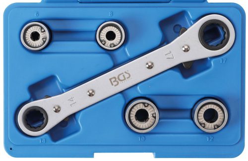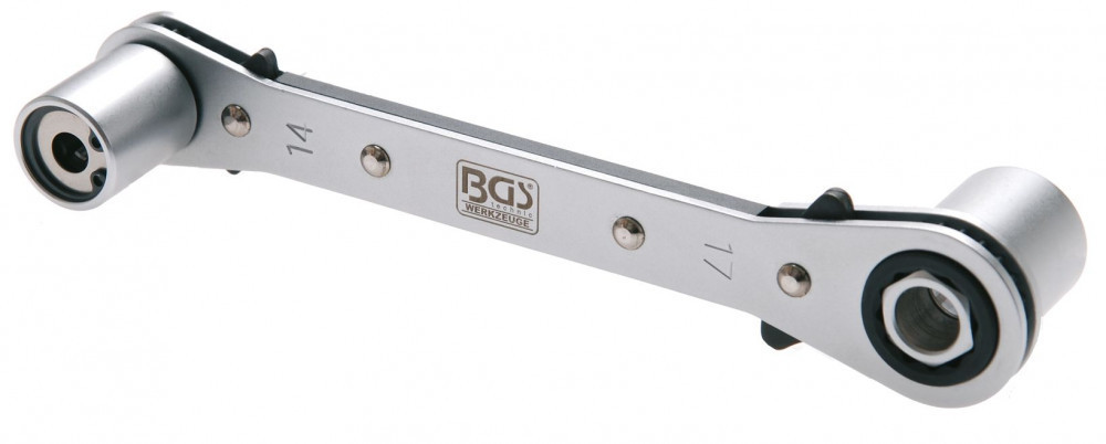 - 1 db dupla gyűrűs racsnis kulcs: 14 x 17 mm, irányváltós