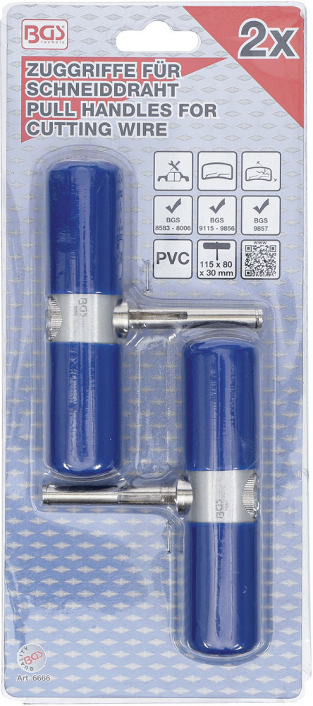 BGS technic Vágódrót-húzófogantyúk szélvédők kivágásához | 2 darabos (BGS 6666)