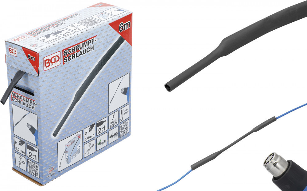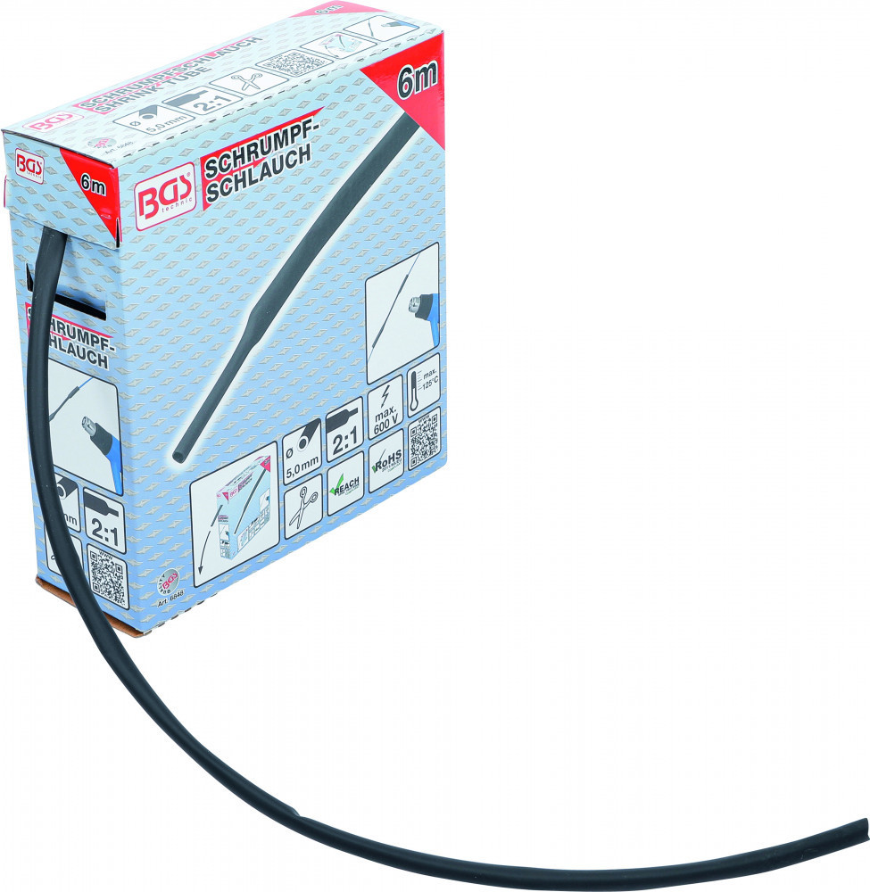 BGS technic Zsugortömlő, dobozban | fekete | Ø 5 mm | 6 m (BGS 6848)