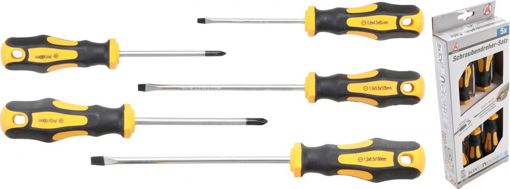 Kraftmann 5 részes műhely csavarhúzó készlet csúszásmentes gumírozott nyéllel (BGS 7946)