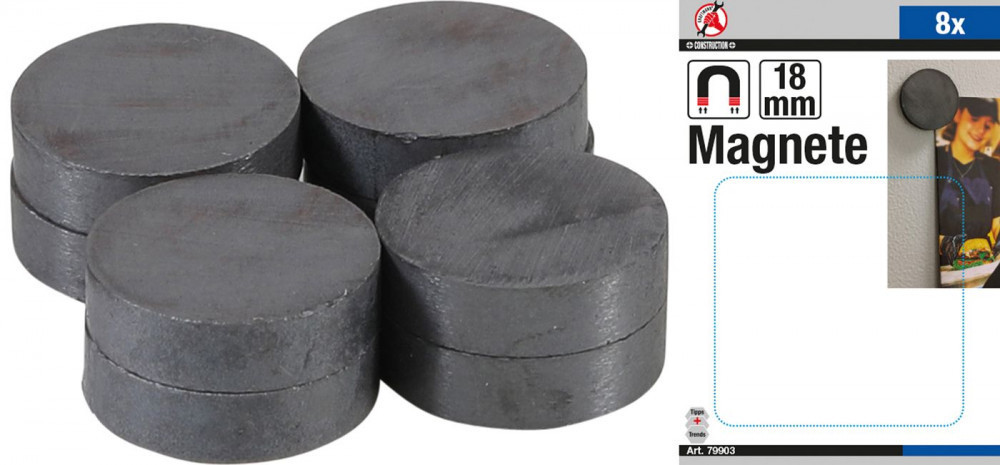 Kraftmann Kerámia mágnes készlet (ferrit mágnes) | Ø 18 mm | 8 darabos (BGS 79903)
