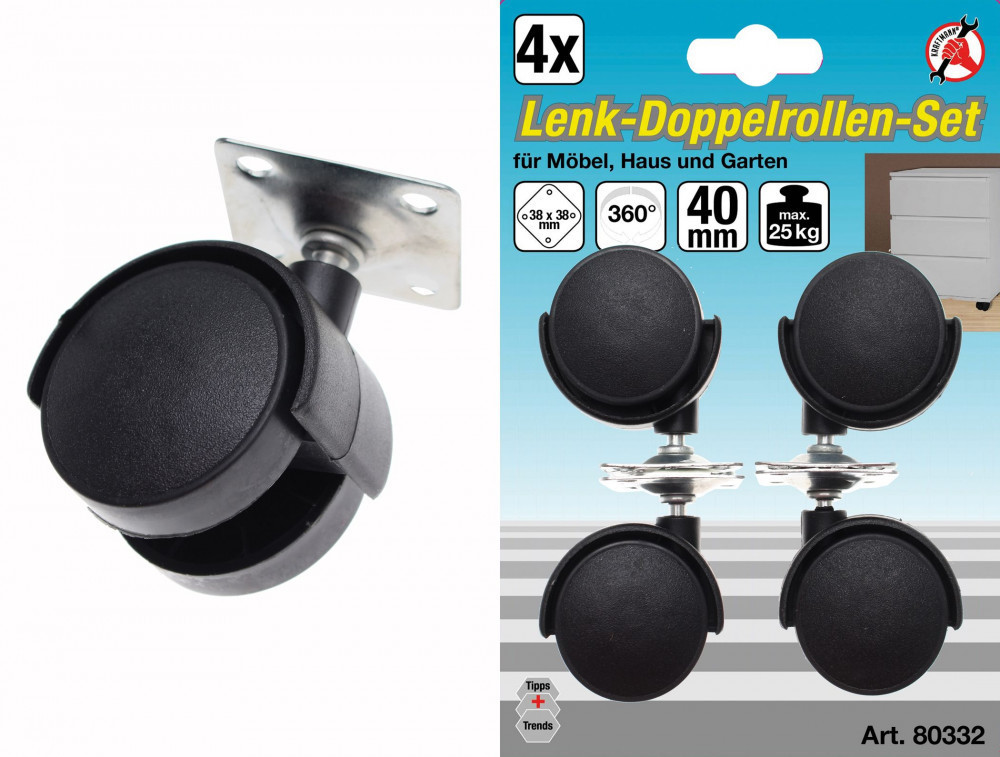 Kraftmann 4 részes körbe forgó, dupla kerekű görgö készlet, 40mm (BGS 80332)