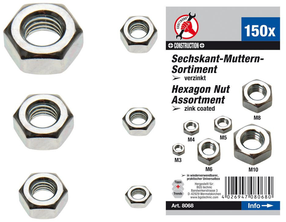 Kraftmann Hatszögű anyacsavar készlet 150 részes (BGS 8068)