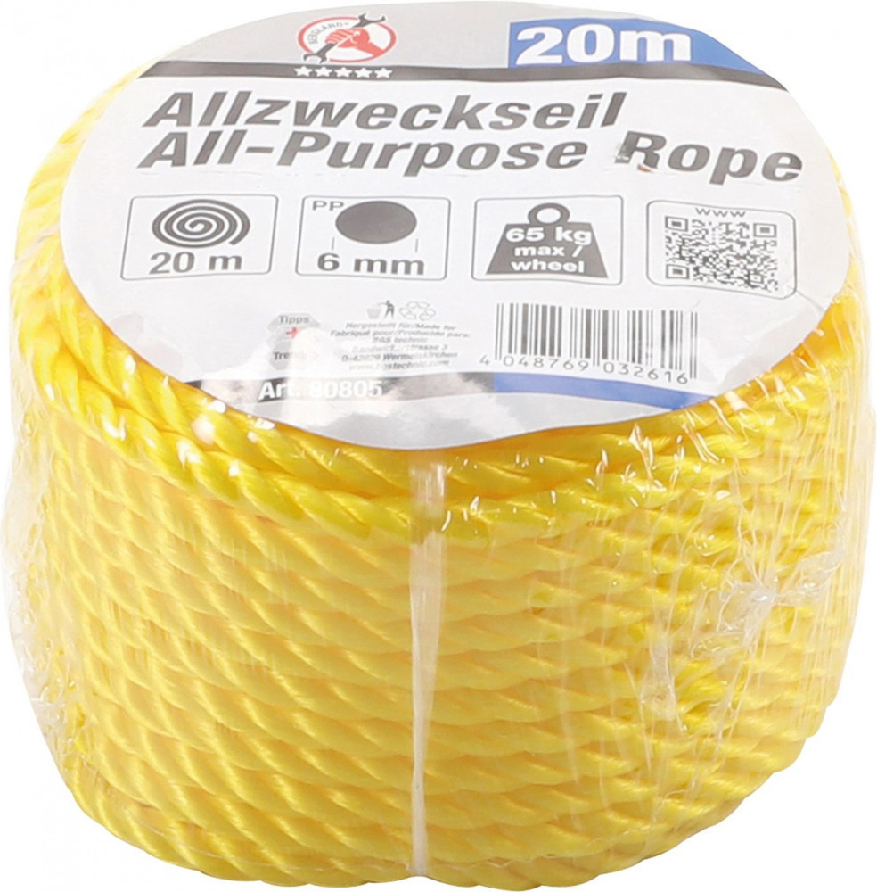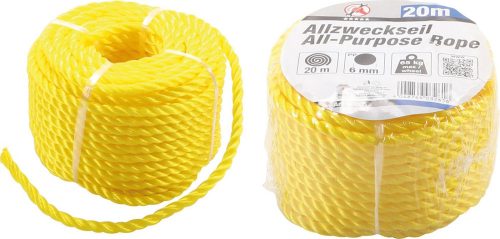 Kraftmann Fonott sárga kötél, max. teherbírás 65 kg, 20m x 6 mm (BGS 80805)