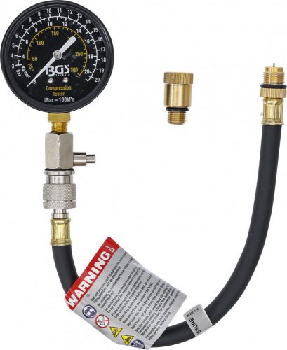 BGS technic Kompresszió mérő, 12 + 14 mm adapterrel (BGS 8236)