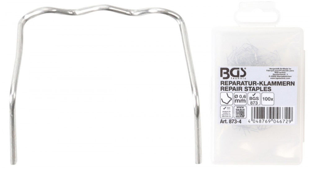 BGS technic Műanyagelem tűzőkapocs készlet | L alakú | Ø 0,6 mm | 100 darabos | a BGS 873 Műanyag javító szetthez (BGS 873-4)