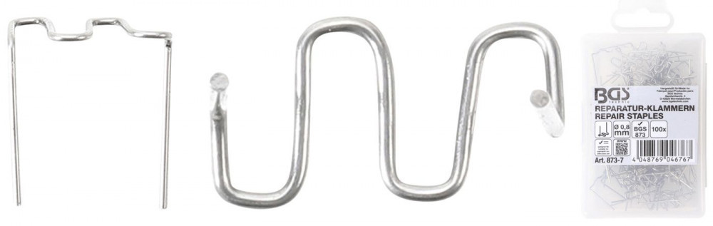BGS technic Műanyagelem tűzőkapocs készlet | W alakú | Ø 0,8 mm | 100 darabos | a BGS 873 Műanyag javító szetthez (BGS 873-7)