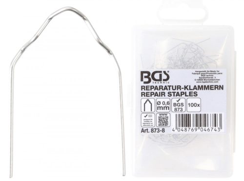 BGS technic Műanyagelem tűzőkapocs készlet | V alakú | Ø 0,6 mm | 100 darabos | a BGS 873 Műanyag javító szetthez (BGS 873-8)