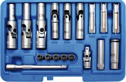 BGS technic 18 részes fix, nyitott és csuklós dugófej készlet izzítógyertyákhoz (BGS 9026)