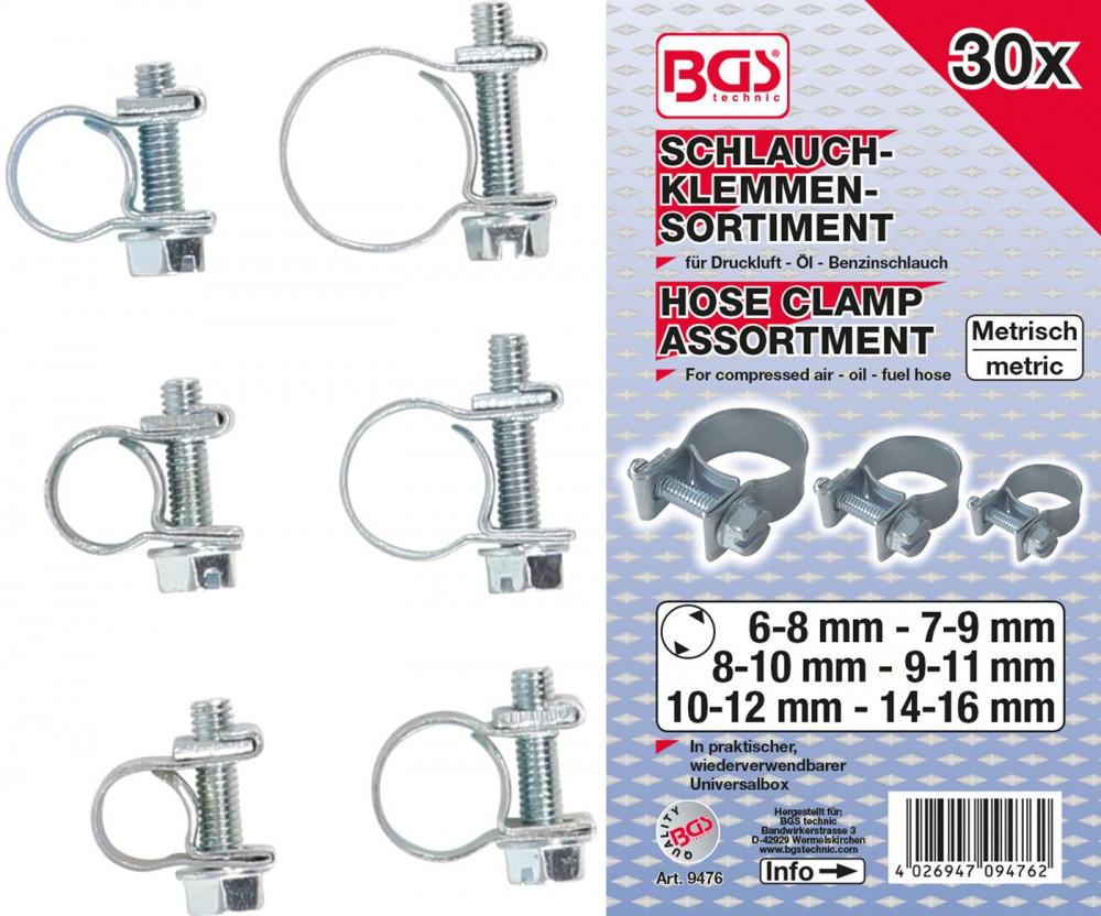 BGS technic 30 részes acél tömlőbilincs készlet (BGS 9476)