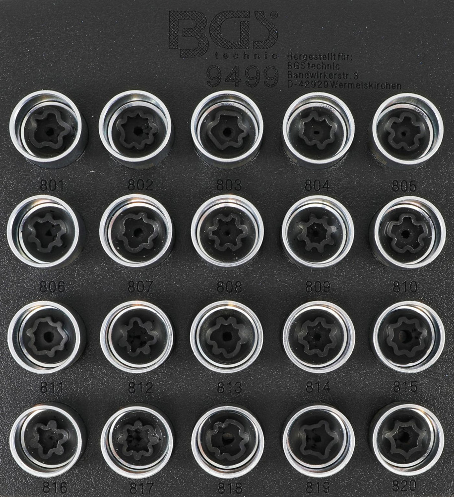 BGS technic 20 részes dugókulcs fej készlet Audi kerékőr csavarokhoz (BGS 9499)